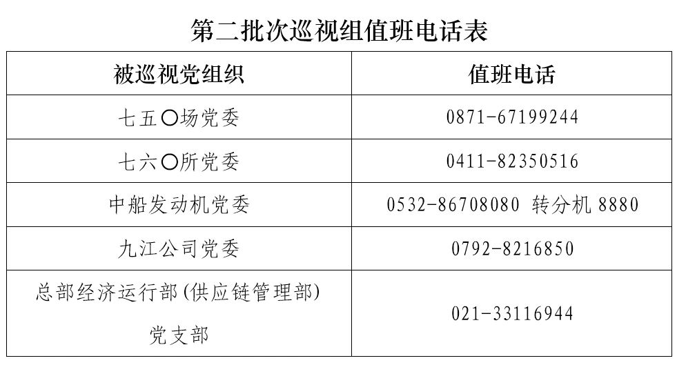 巡視期間,集團公司黨組巡視組設(shè)置值班電話和聯(lián)系信箱,主要受理反映被巡視黨組織領(lǐng)導(dǎo)班子及其成員、下一級黨組織領(lǐng)導(dǎo)班子主要負責(zé)人和重點崗位領(lǐng)導(dǎo)干部問題的來信、來電、來訪,重點關(guān)注違反政治紀律、組織紀律、廉潔紀律、群眾紀律、工作紀律、生活紀律以及巡視整改等方面問題反映。第二批次巡視受理信訪截止時間為8月18日。