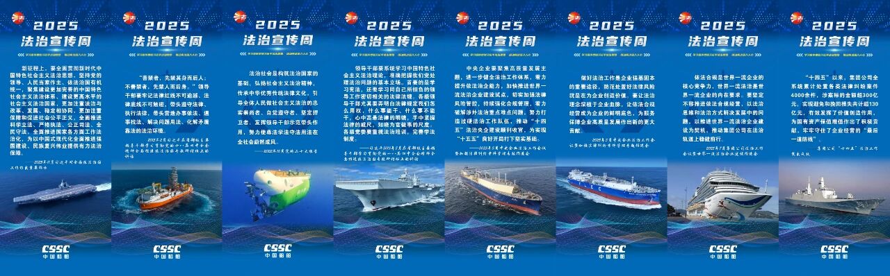 今年12月4日是第十二個國家憲法日。中國船舶集團有限公司深入貫徹落實中央宣傳部、司法部、全國普法辦《2025年全國“憲法宣傳周”工作方案》部署要求,以“學習宣傳貫徹習近平法治思想,推動憲法深入人心”為主題,精心組織開展2025年法治宣傳周系列活動。活動將學習貫徹習近平法治思想、習近平文化思想及憲法精神,與法治央企建設要求以及集團“懸規(guī)植矩 循序善治”特色法治文化深度融合,為加快建設世界一流船舶集團厚植法治土壤、注入強勁法治動能。