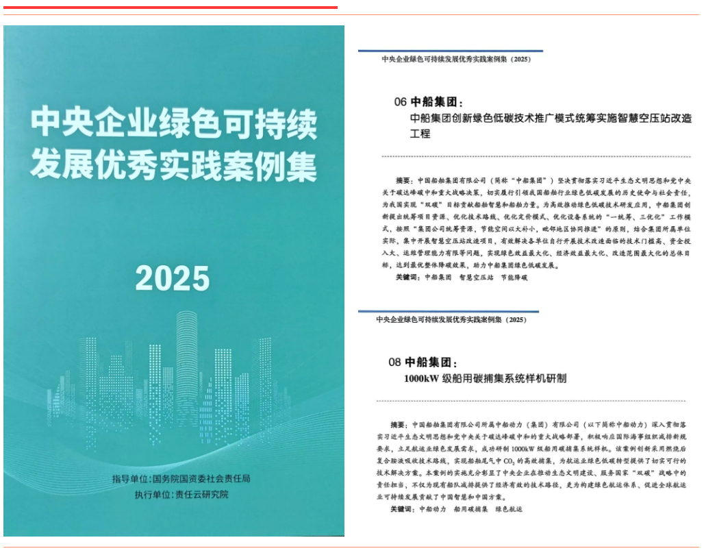 《中船集團創(chuàng)新綠色低碳技術(shù)推廣模式 統(tǒng)籌實施智慧空壓站改造工程》通過系統(tǒng)推進智慧空壓站改造,創(chuàng)新“一統(tǒng)籌、三優(yōu)化”模式,大幅提升設(shè)備能效?!吨写瑒恿?000kW級船用碳捕集系統(tǒng)樣機研制》圍繞船用碳捕集關(guān)鍵技術(shù)開展攻關(guān),采用燃燒后復(fù)合胺吸收工藝,實現(xiàn)CO?捕集率超85%、純度達99.9%。上述兩項案例入選《中央企業(yè)綠色可持續(xù)發(fā)展優(yōu)秀實踐案例集(2025)》。