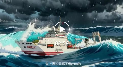 該片是一部全程由AI技術(shù)生成的創(chuàng)意動(dòng)畫短片。作品以擬人化的手法,賦予全球頂級(jí)救援船“南海救103”以靈魂與聲音。短片設(shè)置了一場(chǎng)即將到來的12級(jí)臺(tái)風(fēng)“芭芭拉”,在緊張與幽默的對(duì)話中,生動(dòng)展現(xiàn)了我國自主研發(fā)的救助船的磅礴力量與尖端科技。