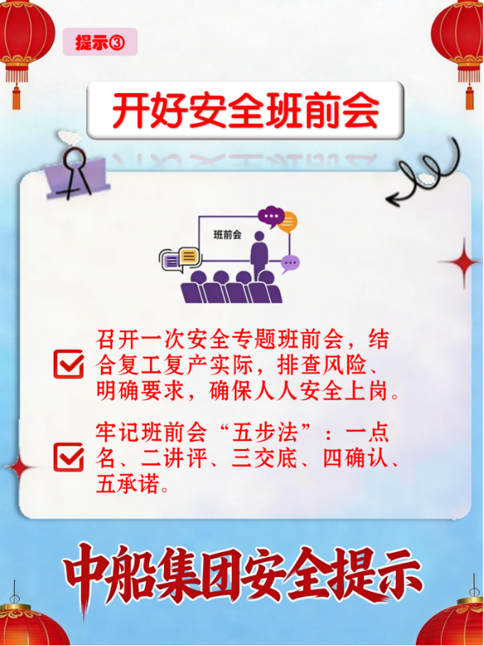 節(jié)后復(fù)工既要跑出“加速度”,更要守好安全“生命線”.復(fù)工復(fù)產(chǎn)要警惕哪些安全隱患?如何防范事故發(fā)生?如何確保復(fù)工復(fù)產(chǎn)安全有序、平穩(wěn)推進(jìn)?這份安全提示請收好。